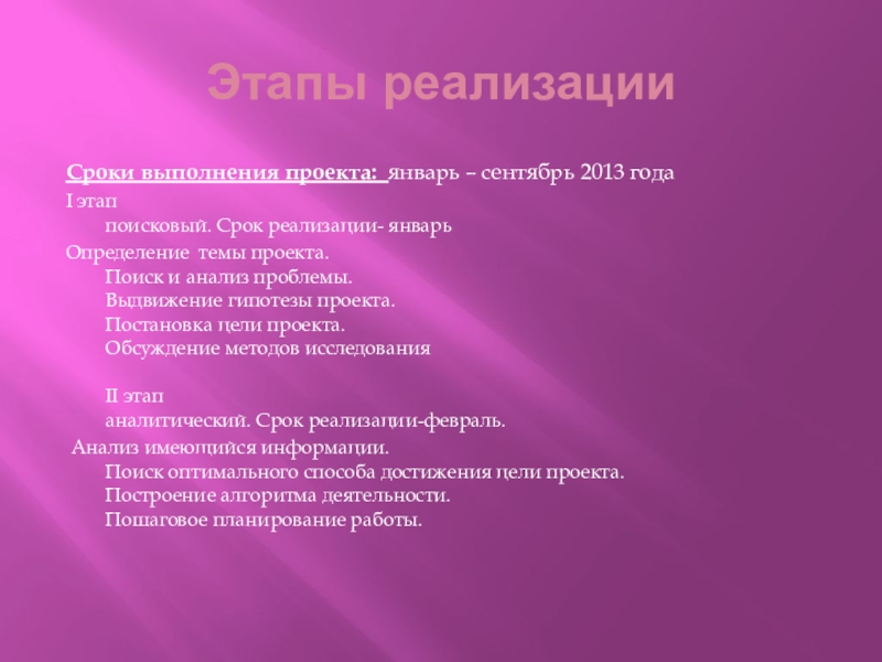 Слайд 6Этапы реализации