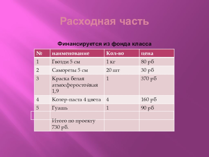 Расходная часть