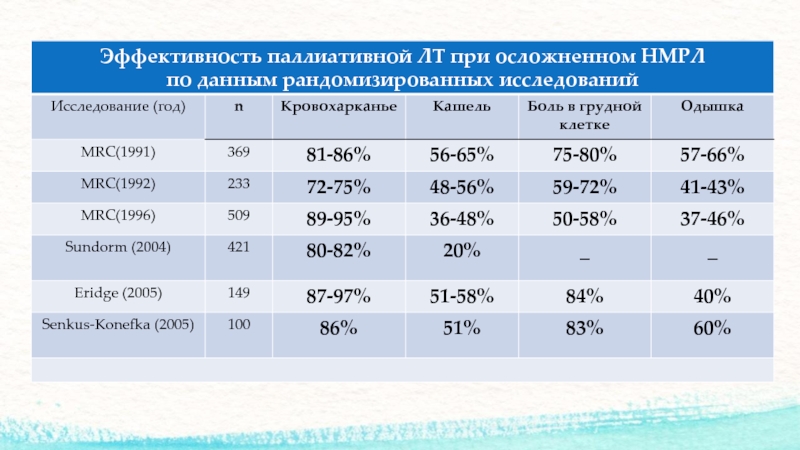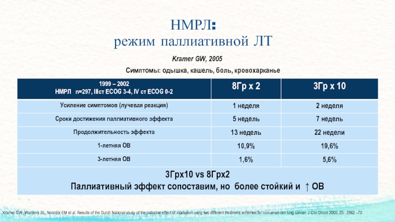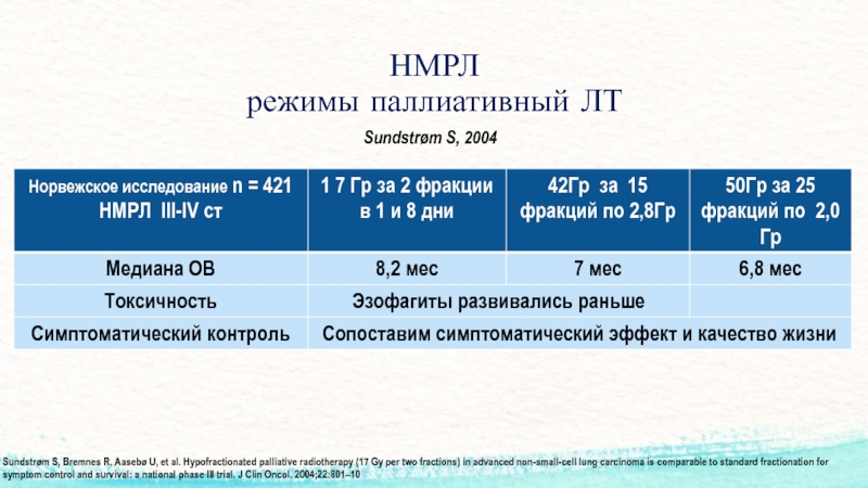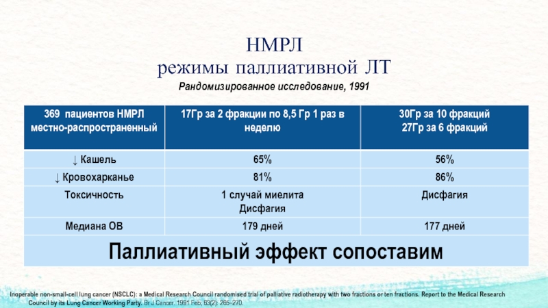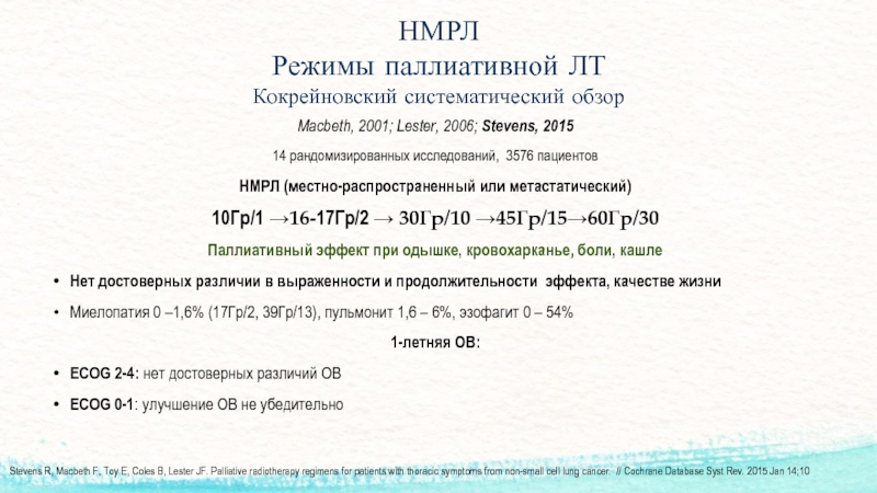Stevens R, Macbeth F, Toy E, Coles B, Lester JF. Palliative radiotherapy regimens for patients with thoracic symptoms from non-small cell lung cancer. // Cochrane Database Syst Rev. 2015 Jan 14;10
