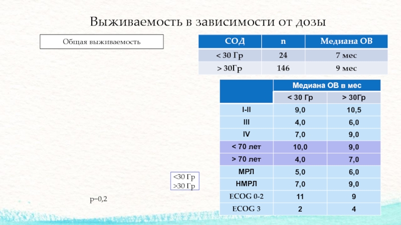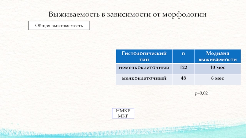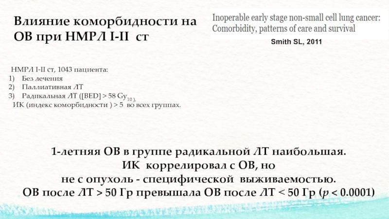 Влияние коморбидности на ОВ при НМРЛ I-II ст