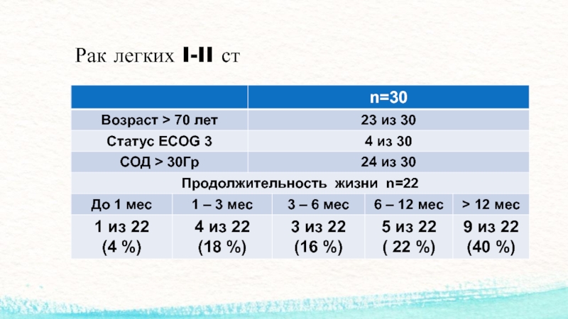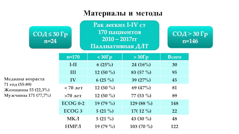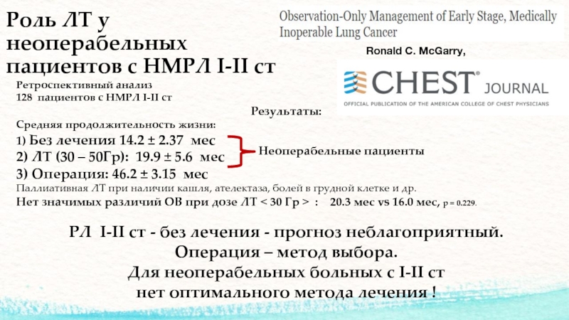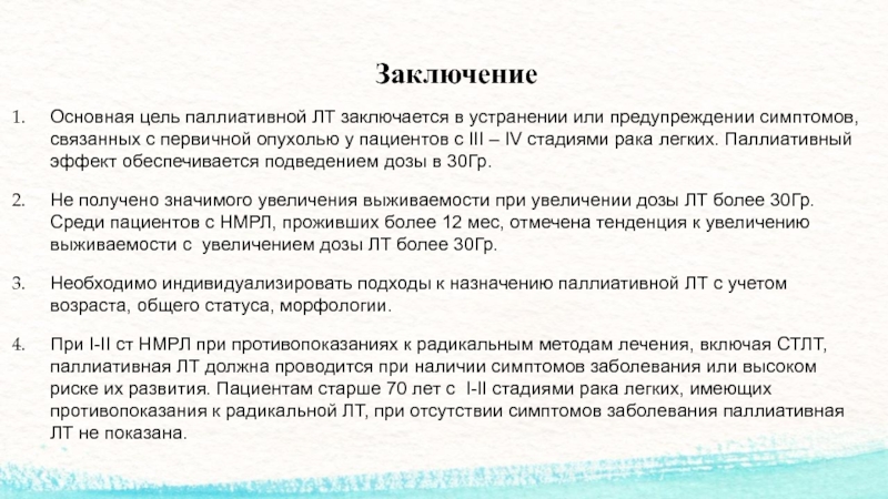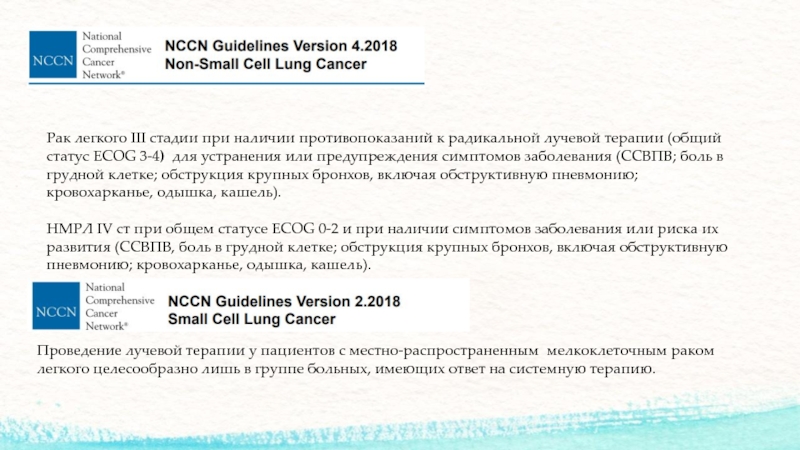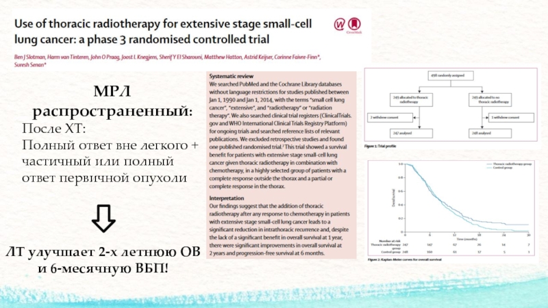 Проведение лучевой терапии у пациентов с местно-распространенным мелкоклеточным раком легкого целесообразно лишь в группе больных, имеющих ответ на системную терапию.