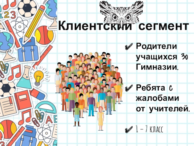 Клиентский сегмент Родители учащихся 30 Гимназии.Ребята c жалобами от учителей.1 – 7 класс