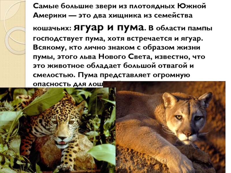 Слайд 34Самые большие звери из плотоядных Южной Америки — это два
