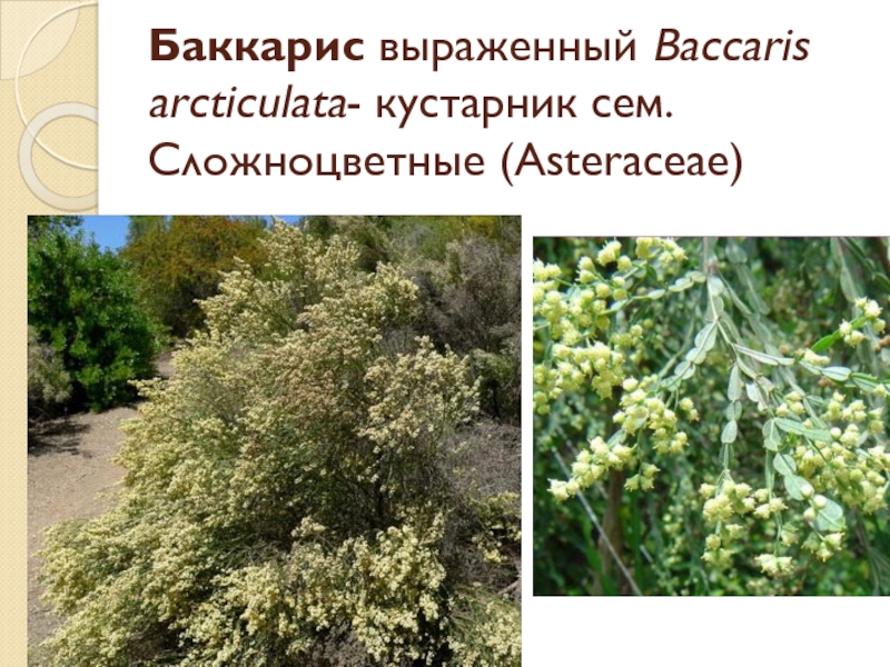 Слайд 16Баккарис выраженный Baccaris arcticulata- кустарник сем. Сложноцветные (Asteraceae)