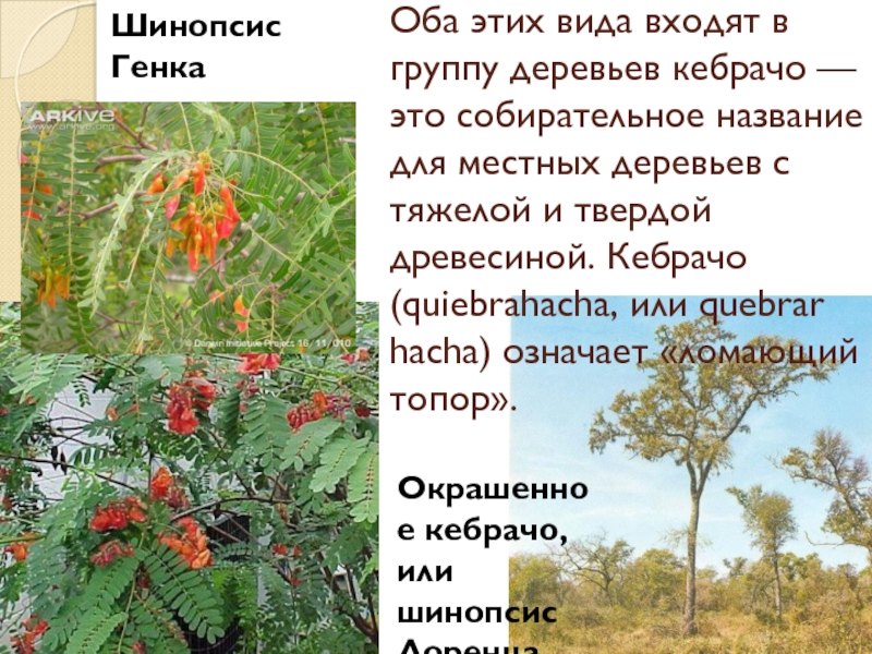 Слайд 10Оба этих вида входят в группу деревьев кебрачо — это