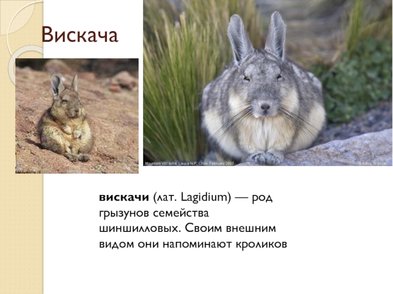 вискачи (лат. Lagidium) — род грызунов семейства шиншилловых. Своим внешним видом