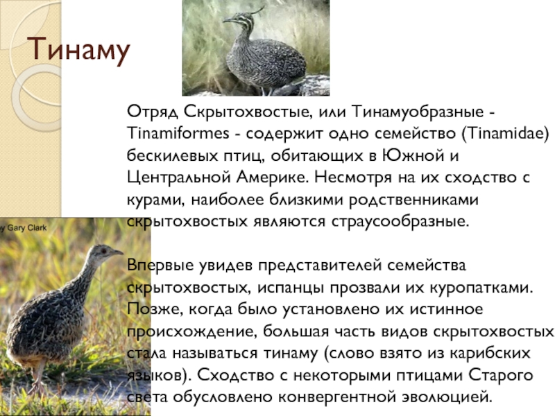 на их сходство с курами, наиболее близкими родственниками скрытохвостых являются страусообразные.
