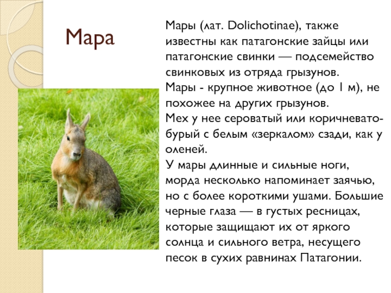 Мары (лат. Dolichotinae), также известны как патагонские зайцы или патагонские