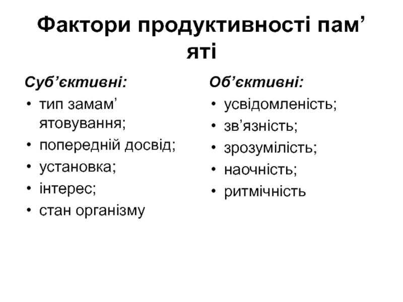 Слайд 15Фактори продуктивності пам’яті