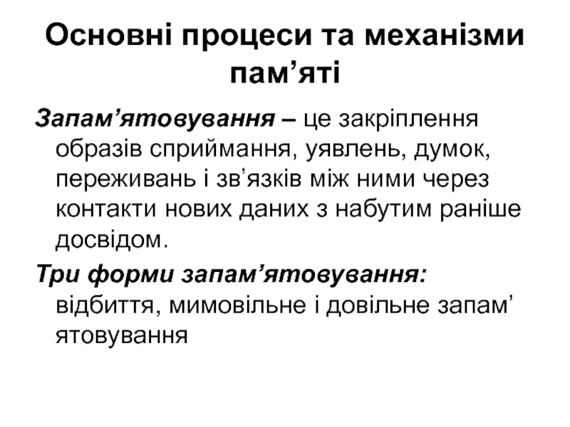 Слайд 12Основні процеси та механізми пам’яті