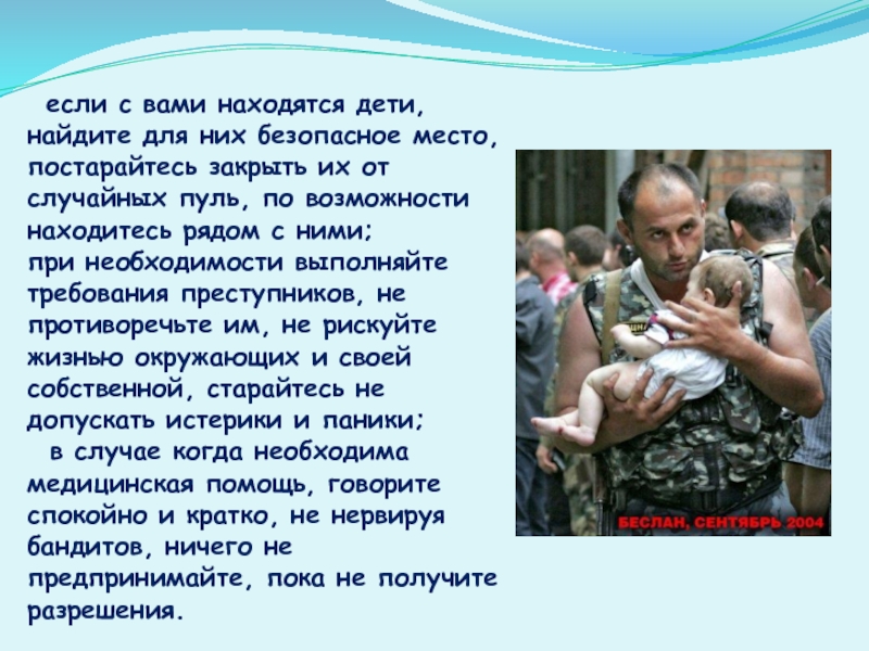 Слайд 12 если с вами находятся дети, найдите для них безопасное
