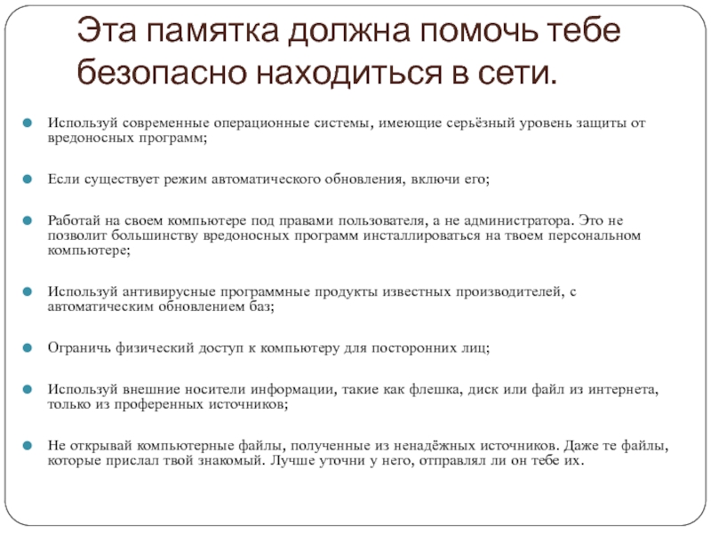 Слайд 4Эта памятка должна помочь тебе безопасно находиться в сети.