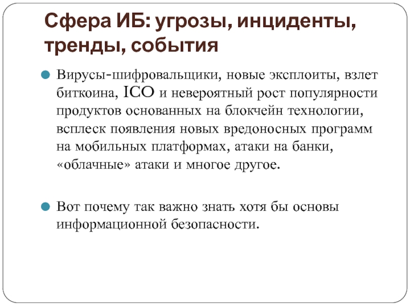 Слайд 3Сфера ИБ: угрозы, инциденты, тренды, события