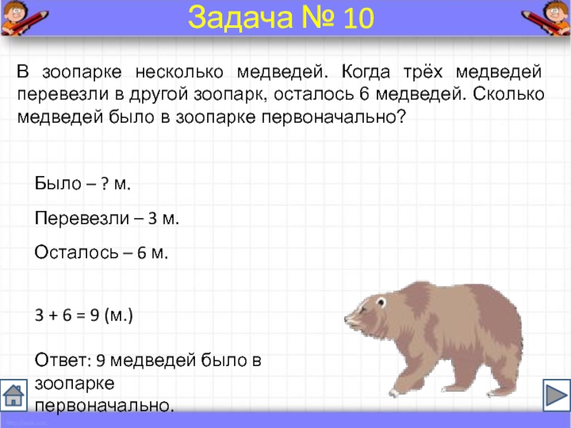 зоопарк, осталось 6 медведей. Сколько медведей было в зоопарке первоначально?