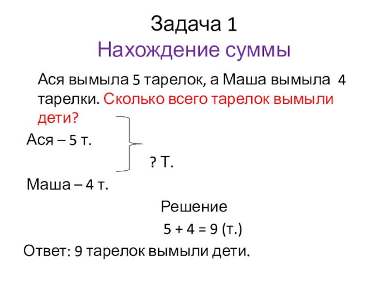 а Маша вымыла 4 тарелки. Сколько всего тарелок вымыли дети?