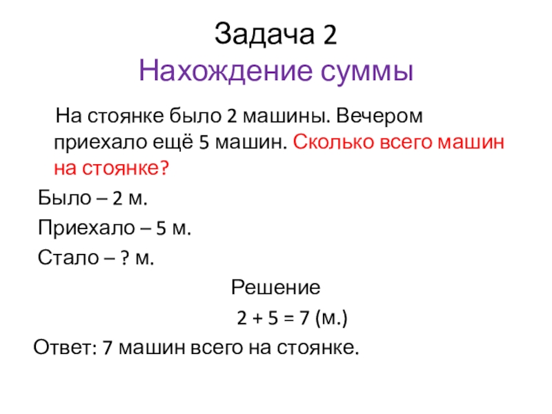 Вечером приехало ещё 5 машин. Сколько всего машин на стоянке?