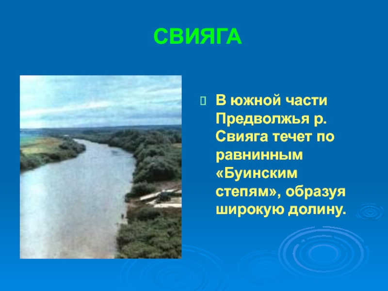 СВИЯГАВ южной части Предволжья р.Свияга течет по равнинным «Буинским степям», образуя широкую долину.