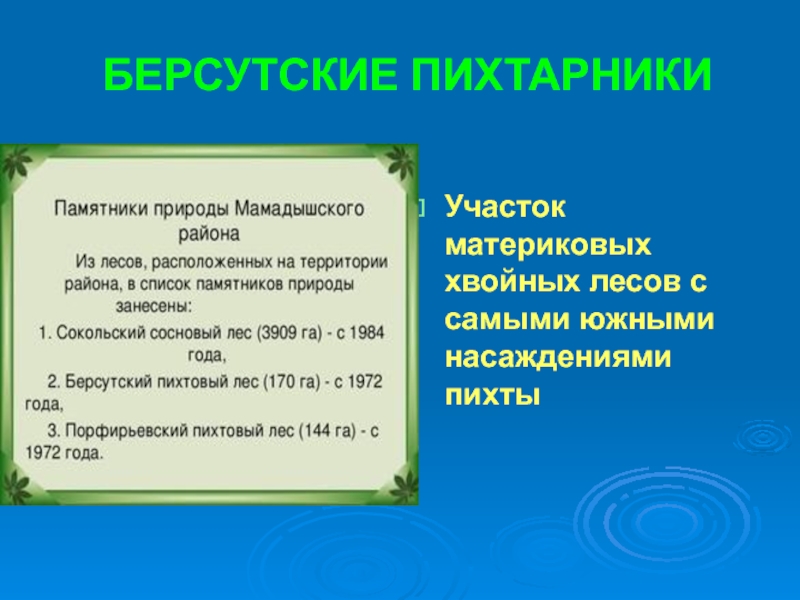 Слайд 7БЕРСУТСКИЕ ПИХТАРНИКИ