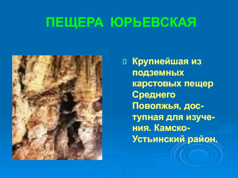 Слайд 25ПЕЩЕРА ЮРЬЕВСКАЯ