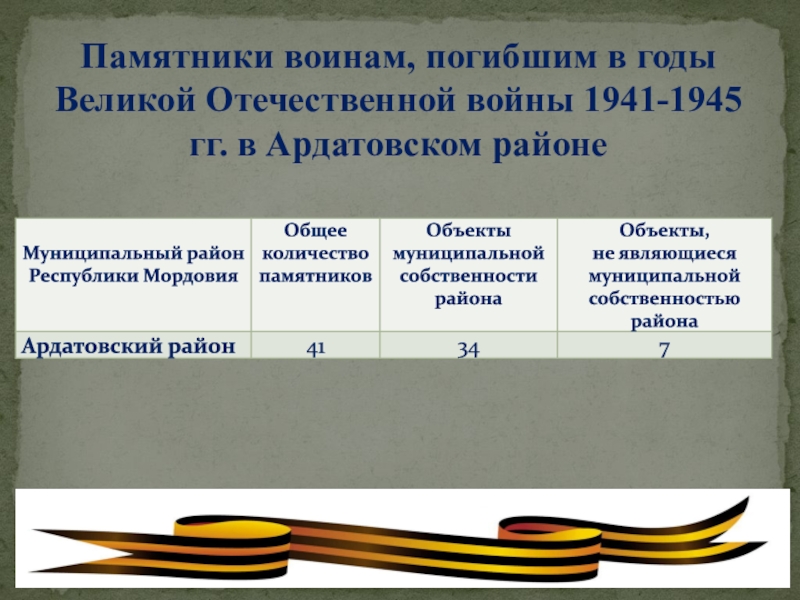 Слайд 1Памятники воинам, погибшим в годы Великой Отечественной войны в Ардатовском