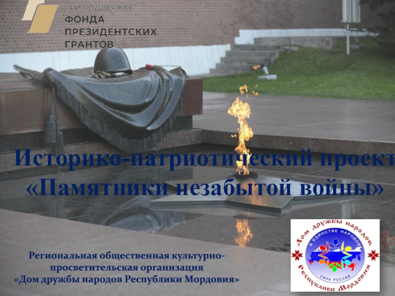 Историко-патриотический проект «Памятники незабытой войны»Региональная общественная культурно-просветительская организация «Дом дружбы народов Республики Мордовия»