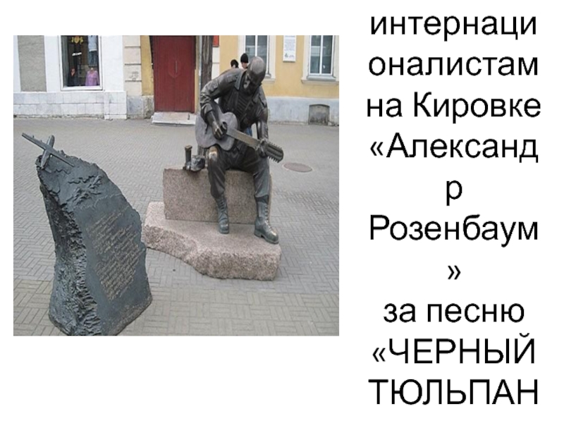 Слайд 17Воинам –интернационалистам на Кировке «Александр Розенбаум» за песню «ЧЕРНЫЙ ТЮЛЬПАН»