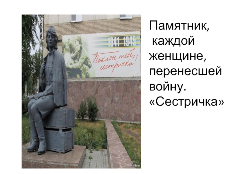 Слайд 16Памятник,  каждой женщине, перенесшей войну. «Сестричка»