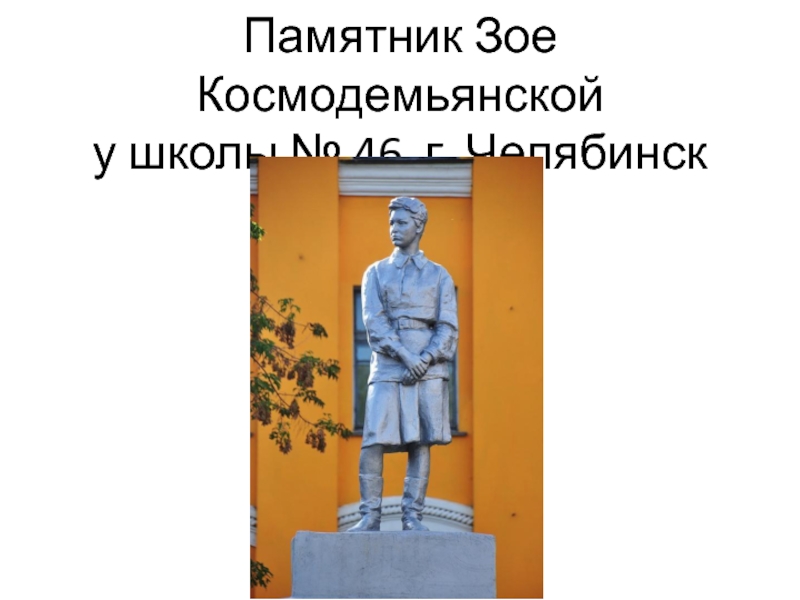 Слайд 18Памятник Зое Космодемьянской у школы № 46 г. Челябинск