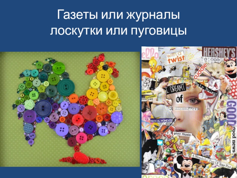 Слайд 18Газеты или журналы лоскутки или пуговицы