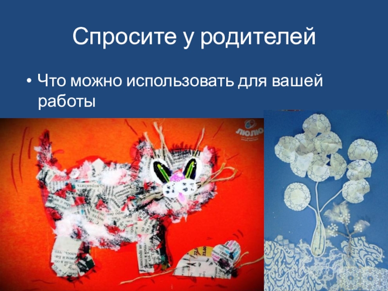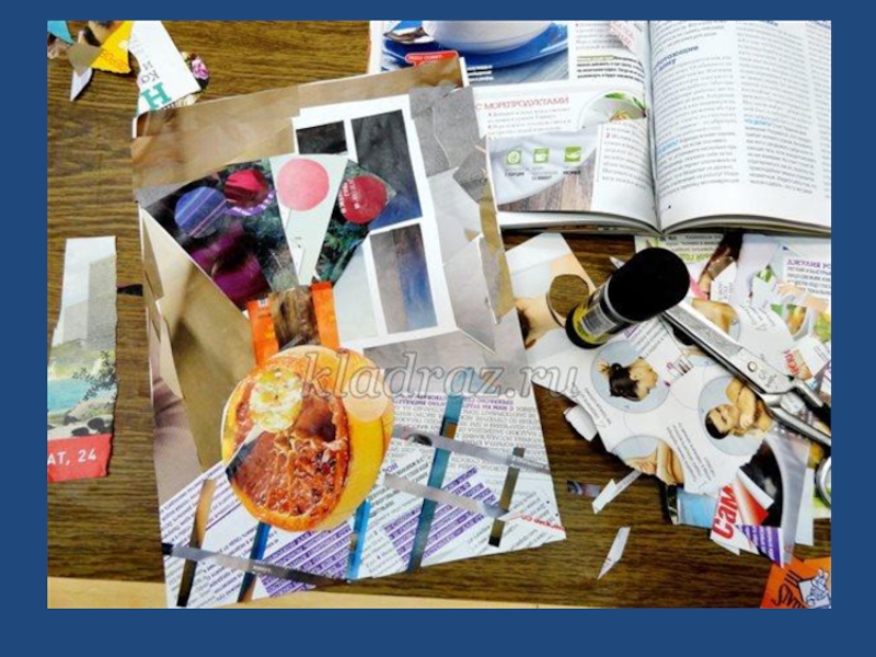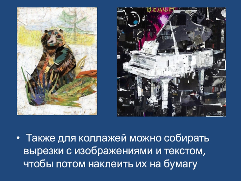 Слайд 6 Также для коллажей можно собирать вырезки с изображениями и