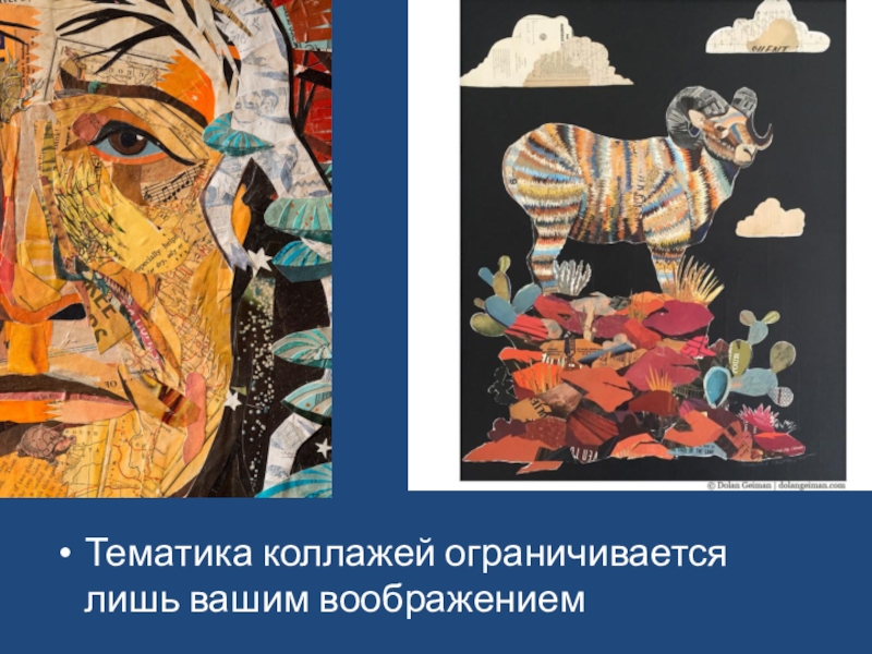 Слайд 9Тематика коллажей ограничивается лишь вашим воображением