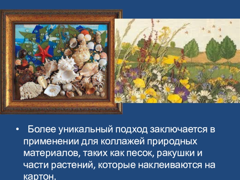 Слайд 8 Более уникальный подход заключается в применении для коллажей природных