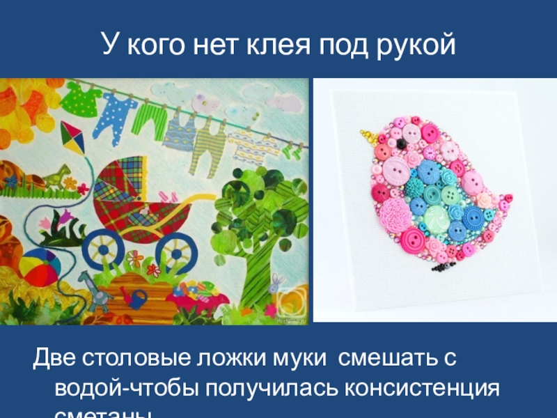 У кого нет клея под рукой  Две столовые ложки муки смешать с водой-чтобы получилась консистенция сметаны.