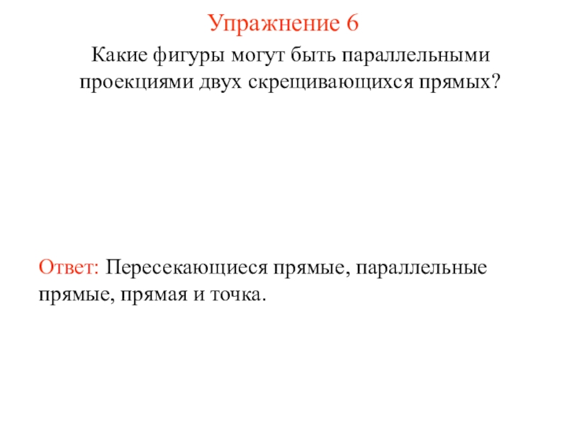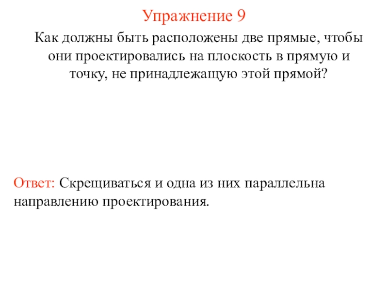 плоскость π в направлении прямой l.Пусть π - некоторая плоскость, l - пересекающая ее прямая. Через произвольную точку A, не принадлежащую прямой l, проведем прямую, параллельную прямой l. Точка пересечения этой прямой с плоскостью π называется параллельной проекцией точки A на плоскость π в направлении прямой l. Обозначим ее A'. Если точка A принадлежит прямой l, то параллельной проекцией A на плоскость π считается точка пересечения прямой l с плоскостью π.
