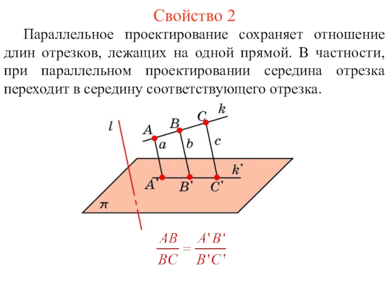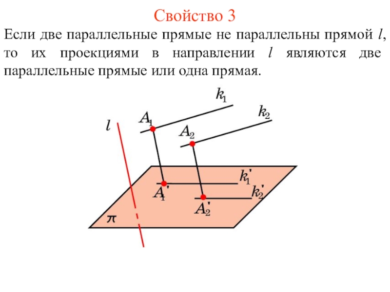 A' на плоскость π. Это соответствие называется параллельным проектированием на