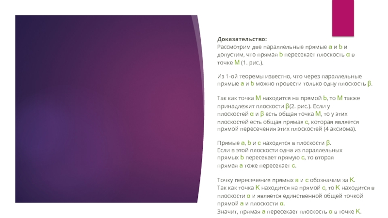 3. Так как через три точки, которые не лежат на одной прямой, можно провести только одну плоскость (2 аксиома), то α является единственной плоскостью, которой принадлежат прямые a и b.
