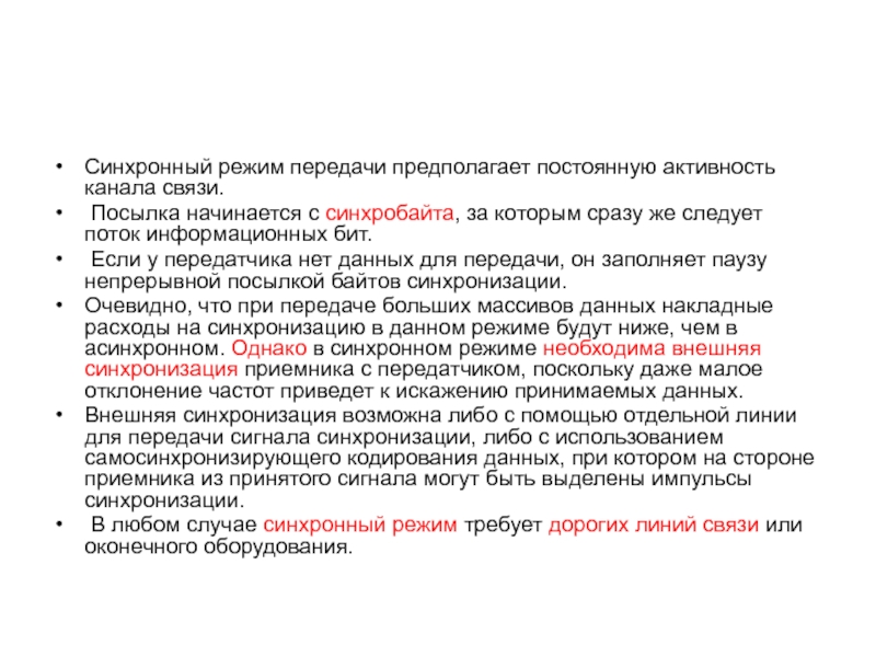 В любом случае синхронный режим требует дорогих линий связи или оконечного оборудования.