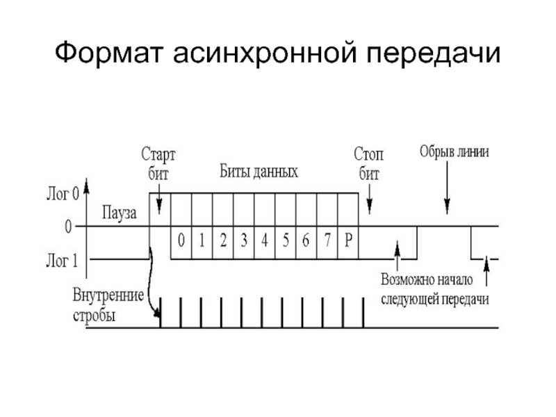 При асинхронной передаче каждому байту предшествует старт-бит, сигнализирующий приемнику о