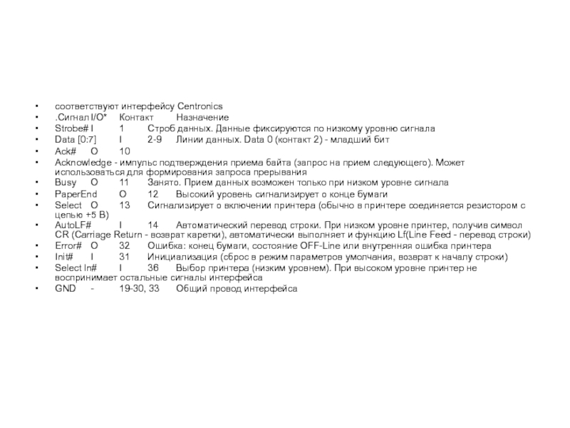 Понятие Centronics относится как к набору сигналов