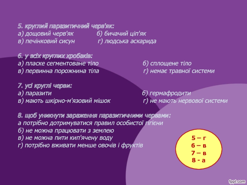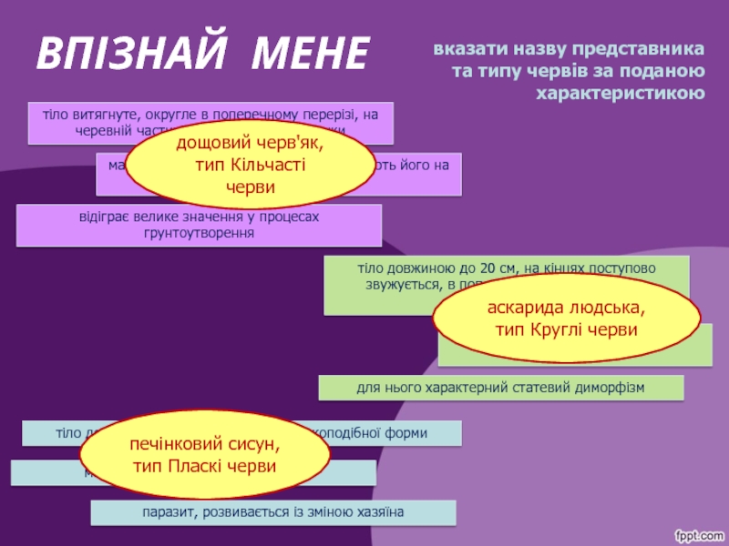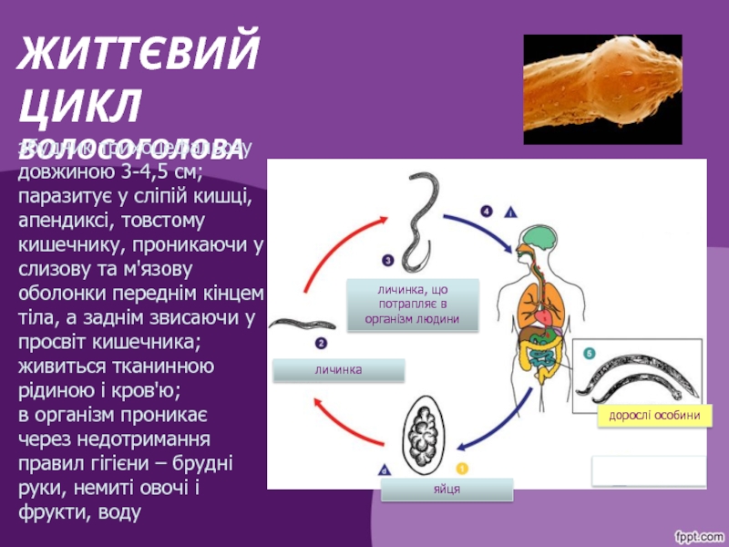 невеликий (до 1 см) мешканець тонкого та товстого кишечника;