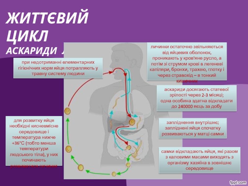 аскариди досягають статевої зрілості через 2-3 місяці;