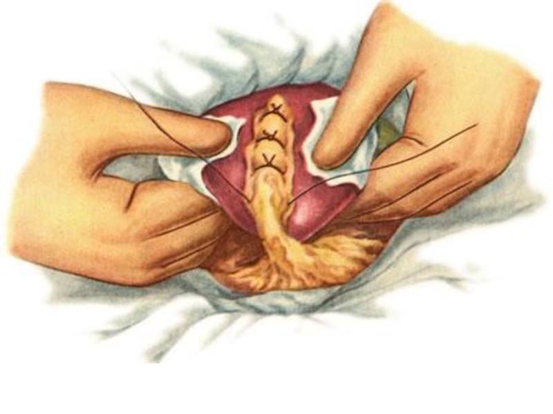 При наличии кровотечения можно подвести сальник на ножке и края раны сшить узловыми швами