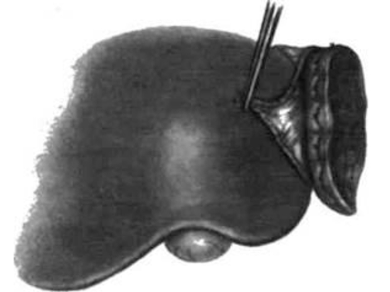 следующем: печеночную ткань прошивают через всю толщу толстой тупой иглой