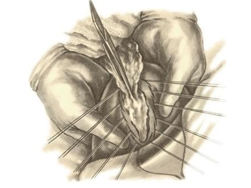 чтобы по отношению к сосудам он располагался поперечно. Если рана