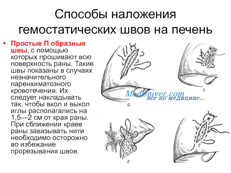 Слайд 10Способы наложения гемостатических швов на печень