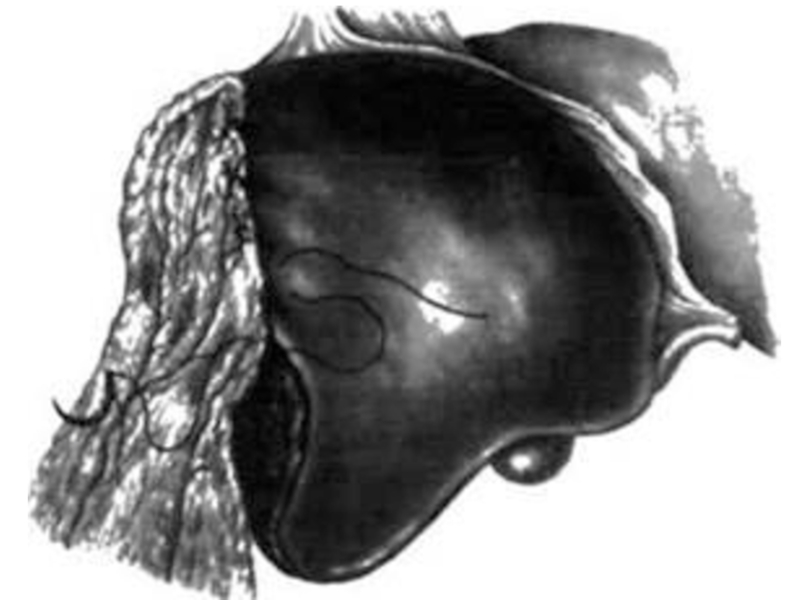 При этом паренхима печени прорезывается и сдавливаются сосуды. Перевязанный участок