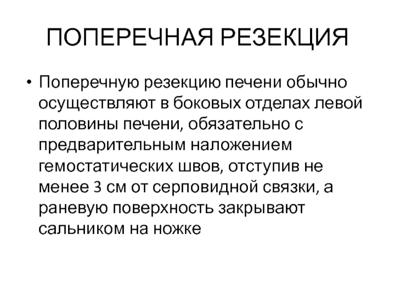 Поперечную резекцию печени обычно осуществляют в боковых отделах левой