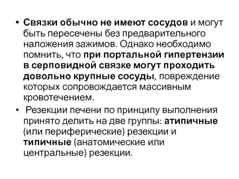 предварительного наложения зажимов. Однако необходимо помнить, что при портальной гипертензии