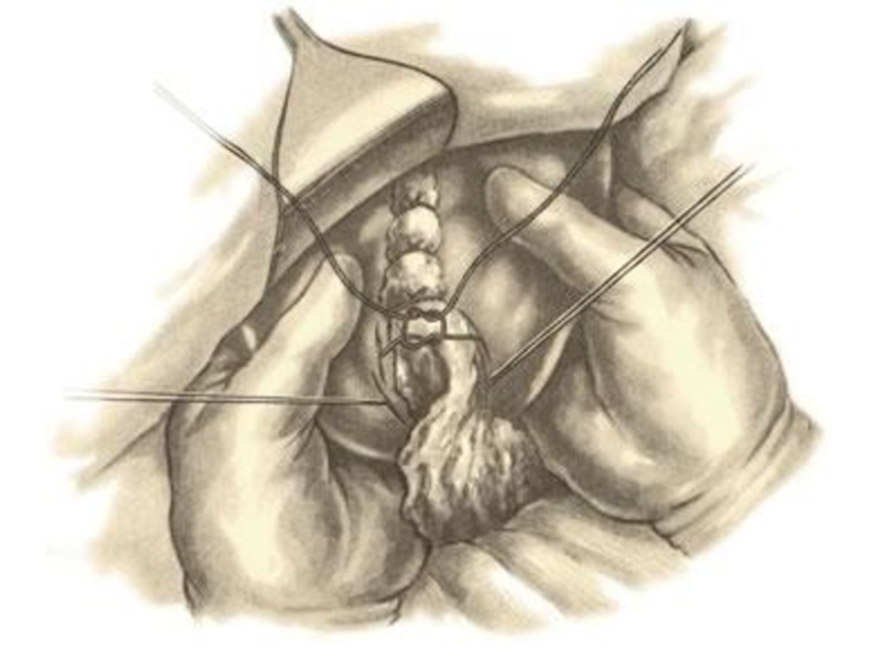 менее 3 см от серповидной связки, а раневую поверхность закрывают сальником на ножке