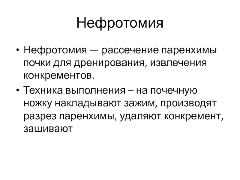Нефротомия — рассечение паренхимы почки для дренирования, извлечения конкрементов.